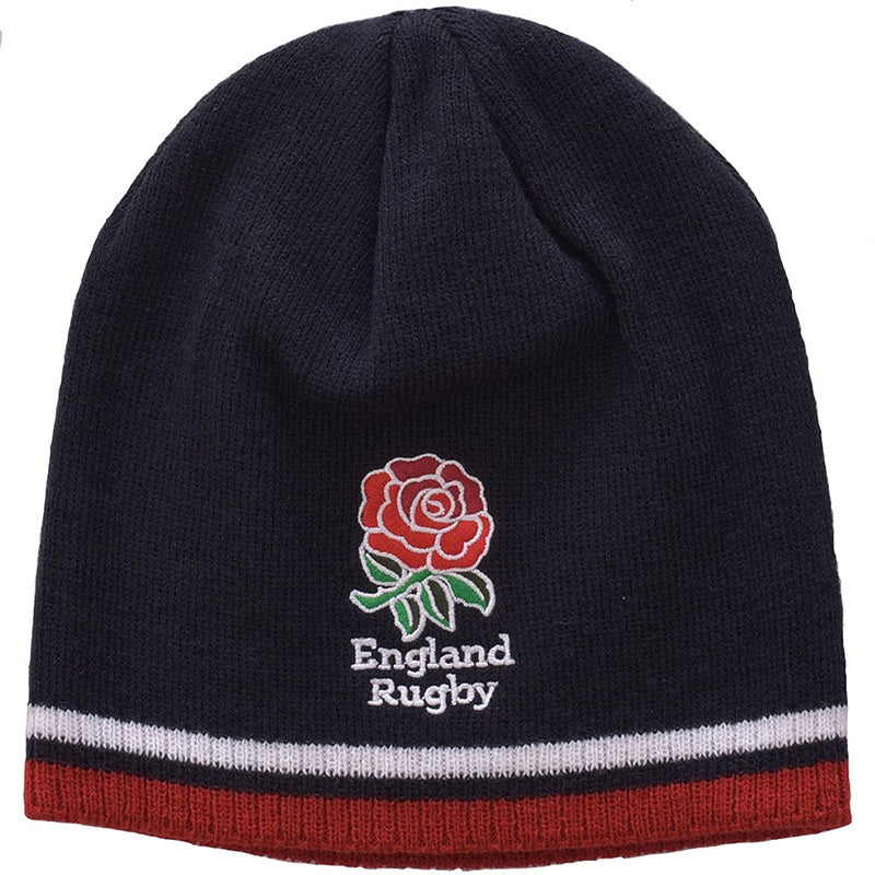 Official England Rugby Core Crest Beanie in navy with a red and white stripe on the edge. Finished with an English Rose embroidered to the front.