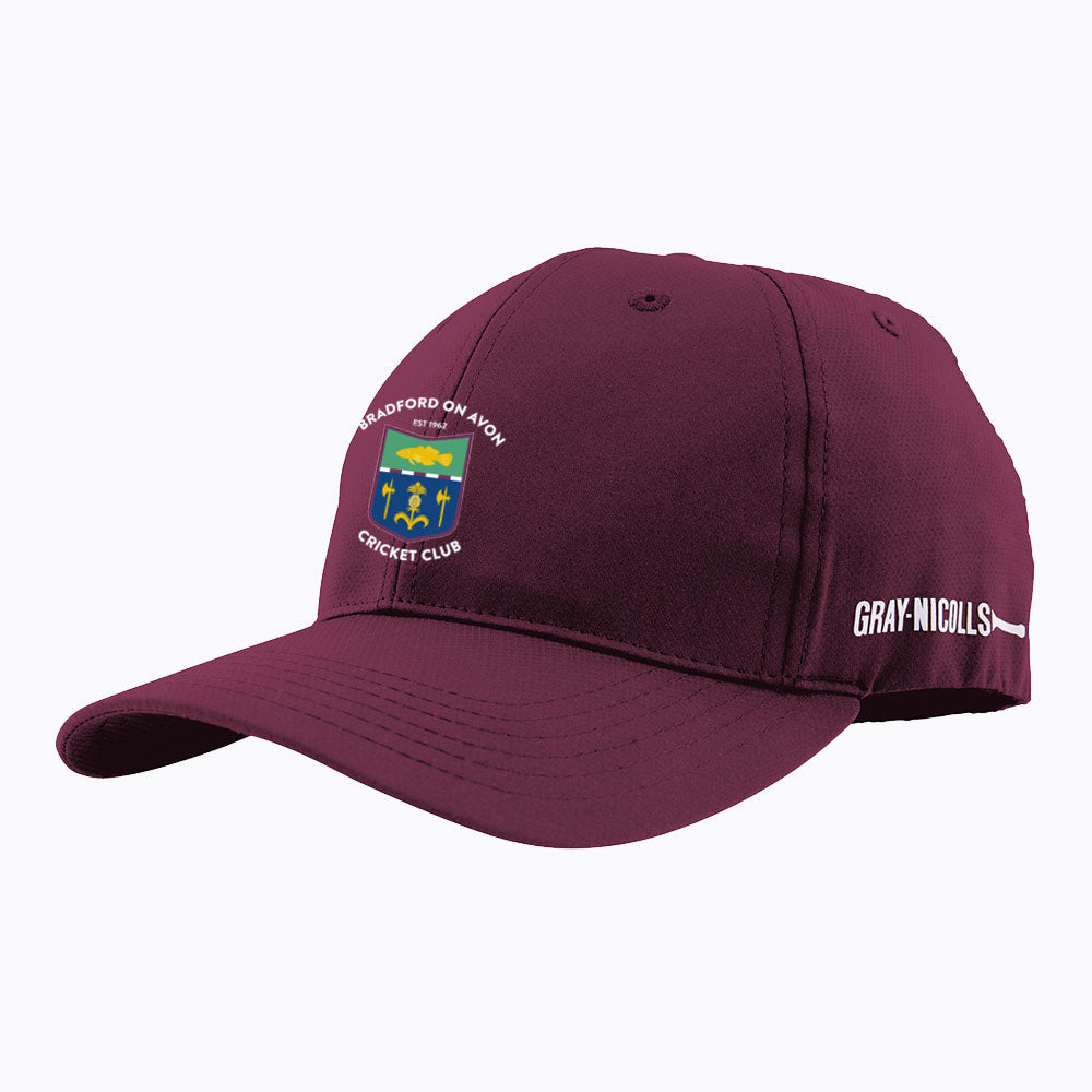 Bradford on Avon CC Pro Fit Cap in maroon with an embroidered club badge to front.