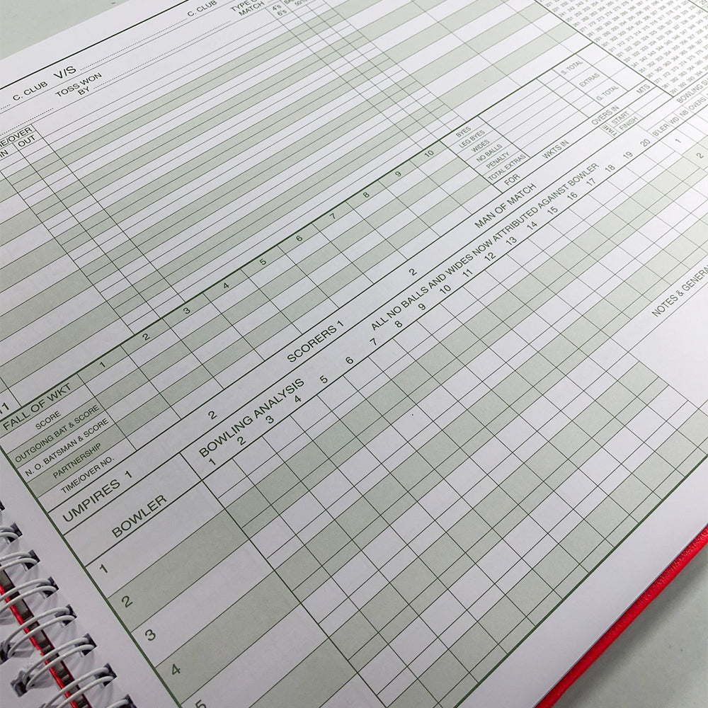This hardback wirebound Cricket Scorebook from Kookaburra holds up to 100 innings.